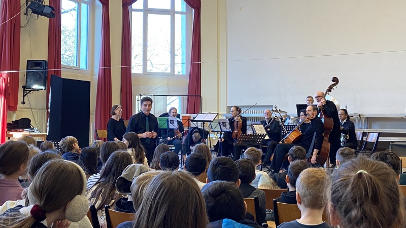 Große Musik für kleine Zuhörer: Das ´Kammerorchester Unter den Linden´ zu Gast in der Aula der Grunewald-Grundschule