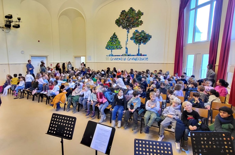 Große Musik für kleine Zuhörer: Das ´Kammerorchester Unter den Linden´ zu Gast in der Aula der Grunewald-Grundschule