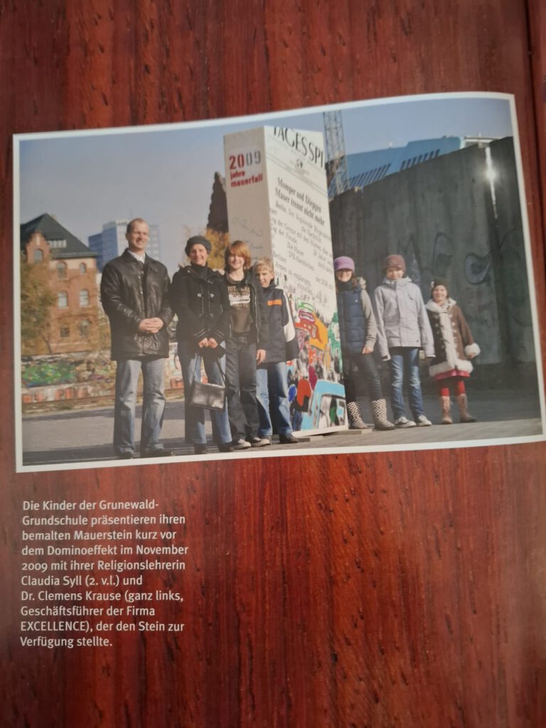 Außerdem wurde an der Gestaltung eines nachgebauten Mauersteins mitgewirkt, welcher Teil einer großen Kunstaktion war. Der Tagesspiegel berichtete beispielsweise in dem Artikel Mauerfalljubiläum – „Der Domino-Effekt“ von dem aufregenden Ereignis.