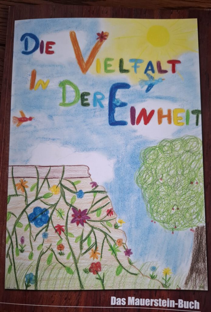 Zwei der Mauersteine des Kunstprojekts zogen anschließend in der Grunewald-Grundschule ein und laden bis heute zum Erinnern an die Mauer, den Mauerfall und die „Vielfalt in der Einheit“ ein.