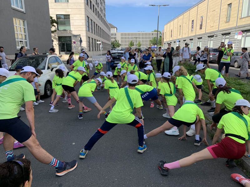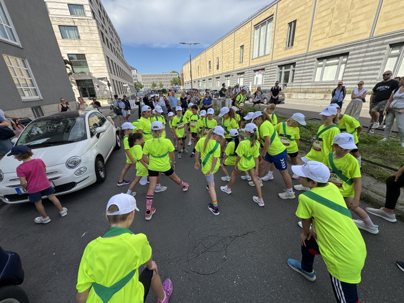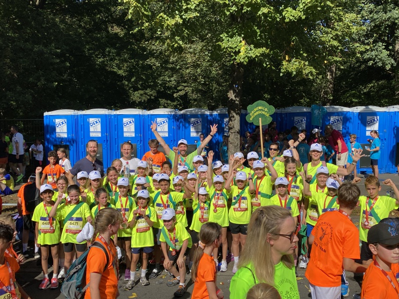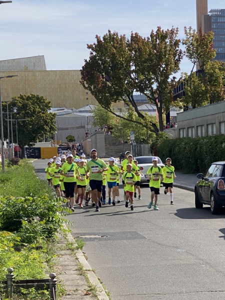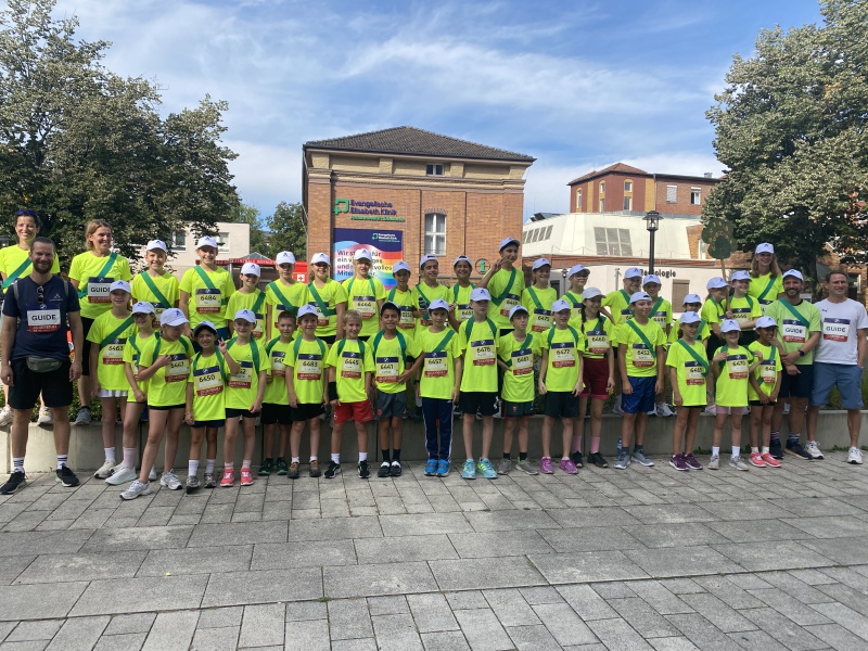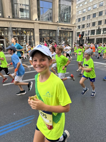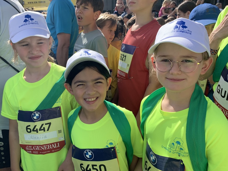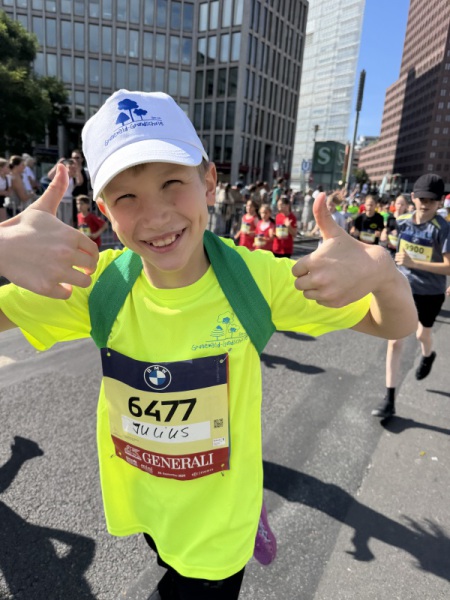 Am 20.9.25, einem letzten warmen Spätsommertag in diesem.Jahr, trafen sich über 30 sehr motivierte Grunewaldgrundschüler*innen, um beim Minimarathon als Teil von über 10 000 Läuferinnen und Läufern die letzten 4,2 km der Original-Marathonstrecke zu laufen.