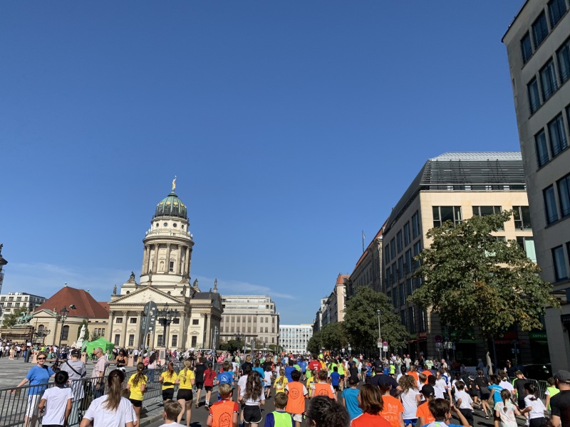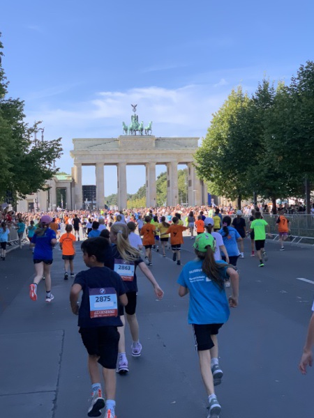 Da zuvor fleißig trainiert wurde, konnten alle die Strecke ohne Gehpause bewältigen Diese führte vom Potsdamer Platz durch Mitte, vorbei am Gendarmenmarkt, bis man schließlich unter die Linden einbog. Von dort war dann schon das Brandenburger Tor zu sehen, hinter dem 200 m weiter das Ziel lag.